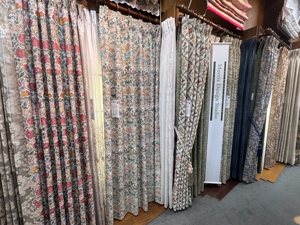モリスをはじめ国内外ブランド多数。生地サンプル常時500点以上を取り揃え、理想の1枚に出会えます。