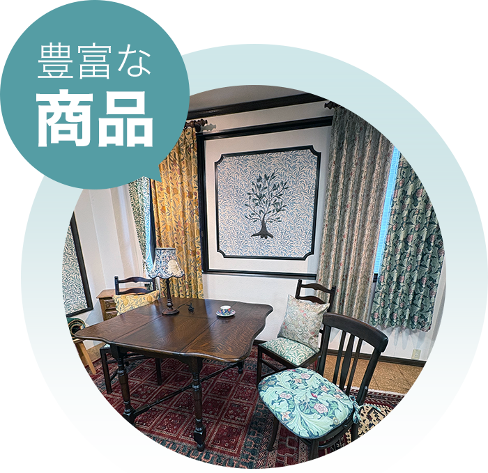 一点一点を丁寧にご案内し、理想の空間づくりをサポートいたしますので、あなたの住まいに合うアイテムが必ず見つかります。